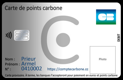 Comment ? Vous êtes doté d'un crédit annuel de 9 000 points carbone Ͼ sur votre compte individuel, accessible par chacune de vos cartes bancaires ou par votre carpone avec blockchaincode avec garantie de confidentialité.